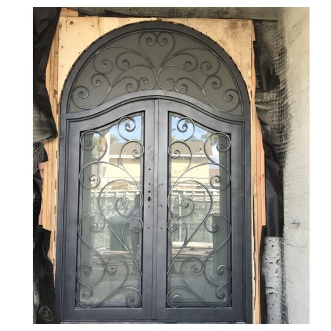China Suppliers Double Entry Wrought Single Iron Glass Arch Design Front Door