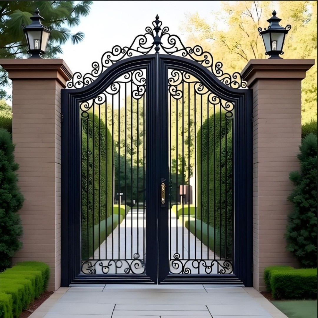 Wrought Iron Gate,Driveway Gate,Sliding Gate,Swing Gate,Wrought Iron Door,Front Door,Entry Door,Wrought Iron Railing,Balcony,Balustrades,Wrought Iron Fence,Fence Panles Custom Design Factory