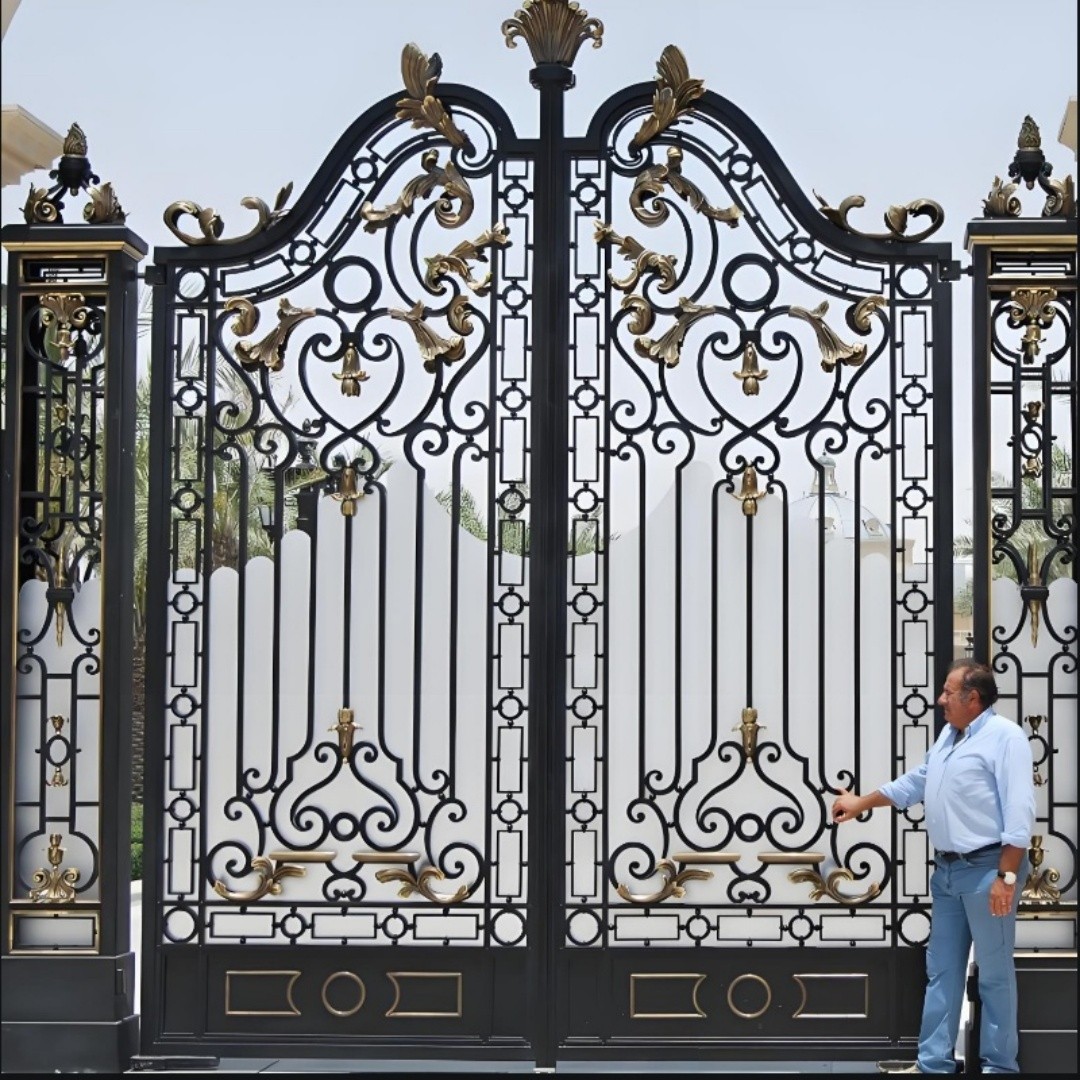 Home » Iron Gate » Solid Wrought Iron Modern Classic Luxury Double Swing Driveway Gate
